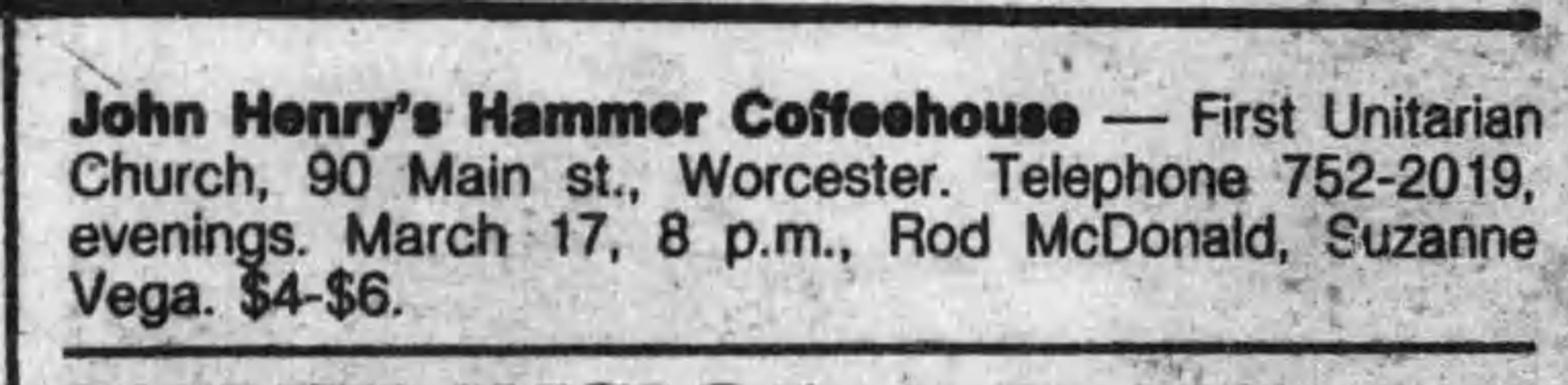 March 17, 1984 John Henry's Hammer Coffeehouse, Worcester, MA