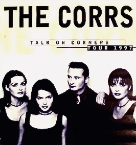 The Talk on Corners Tour (1997-1999) was the second major concert tour by Irish folk-rock band The Corrs—comprised of siblings Andrea (lead vocals, tin whistle), Caroline (vocals, drums, bodhrán, piano), Jim (vocals, guitars, keyboards, piano) and Sharon Corr (vocals, violin, keyboards)—, launched in support of the their 1997 sophomore album of the same name. As usual, The Corrs were supported by their backing duo, Anto Drennan on guitars and Keith Duffy on bass guitar. To date, it was their most extensive tour, with 159 concerts performed at a range of venues across Europe, North America, Oceania and Southeast Asia between November 1997 and July 1999. From 8-17 March 1999, they toured the Northeastern US as openers for several dates of the Rolling Stones' No Security Tour (1999).